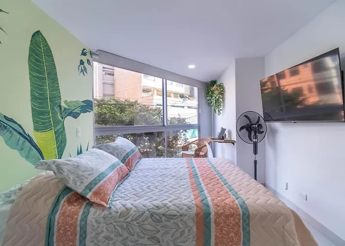 The 1-room Coffee Spring Studio Medellin provides swift access to various city landmarks, such as Pontifical Bolivarian University, located only a 5-minute walk away. Wi-Fi and a private parking lot are also available at the apartment.